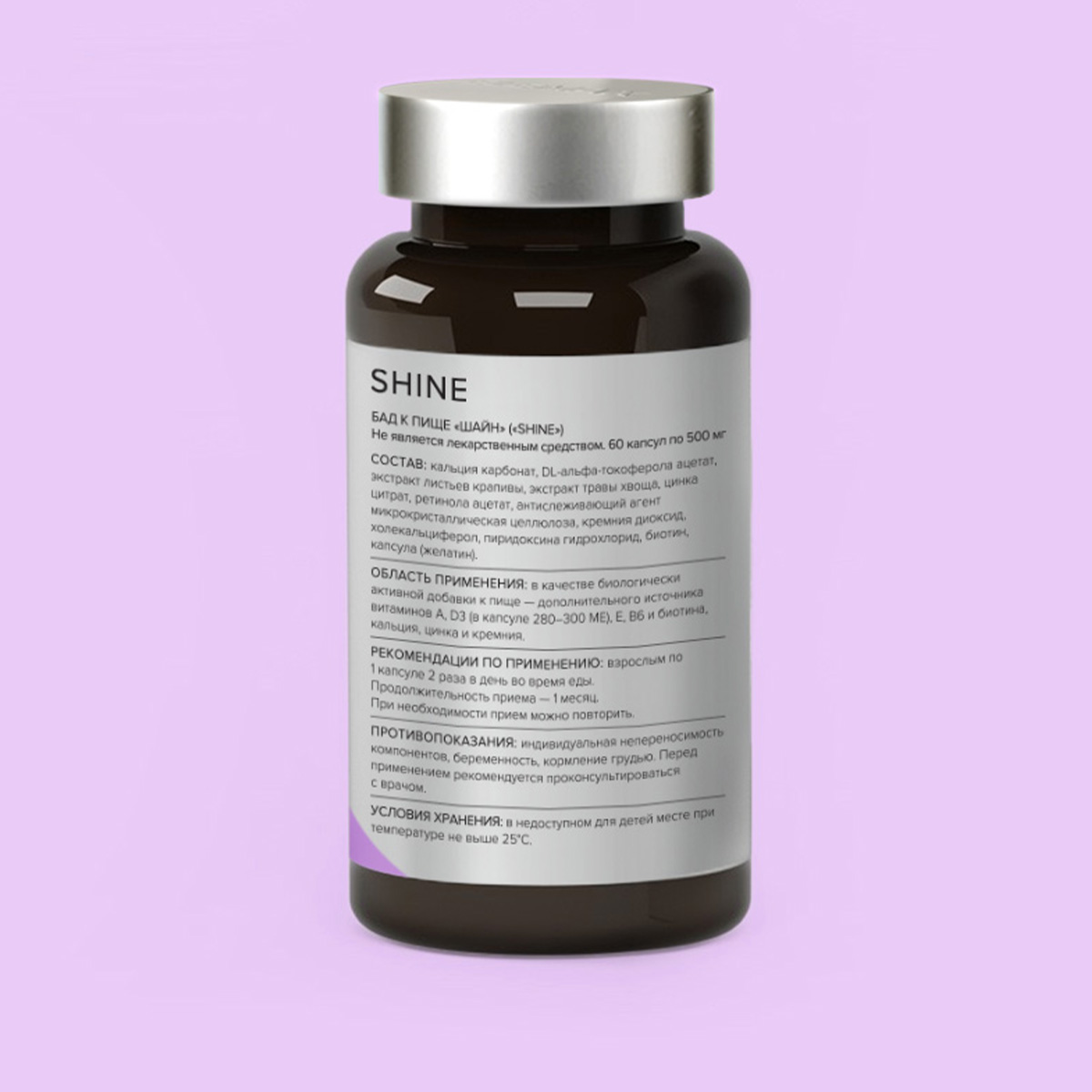 Кальция карбонат, DL-альфа-токоферола ацетат, экстракт листьев крапивы, экстракт травы хвоща, цинка цитрат, ретинола ацетат, антислеживающий агент микрокристаллическая целлюлоза, кремния диоксид, холекальциферол, пиридоксина гидрохлорид, биотин, капсула (желатин).